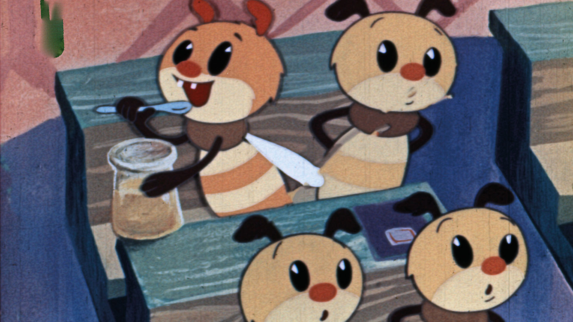 ミツバチたちは立派な働きバチになるために勉強をしますが、よくばりミツバチはいつも食べてばかり。冬が終わり、春がやってくると働きバチの出番です。他のミツバチたちはみんなで力を合わせてはちみつを集めますが、よくばりミツバチは、はちみつを食べてばかりでなかなか集められません。そしてはちみつを独り占めしようと、見つけた巣穴で生活を始めますが…。
