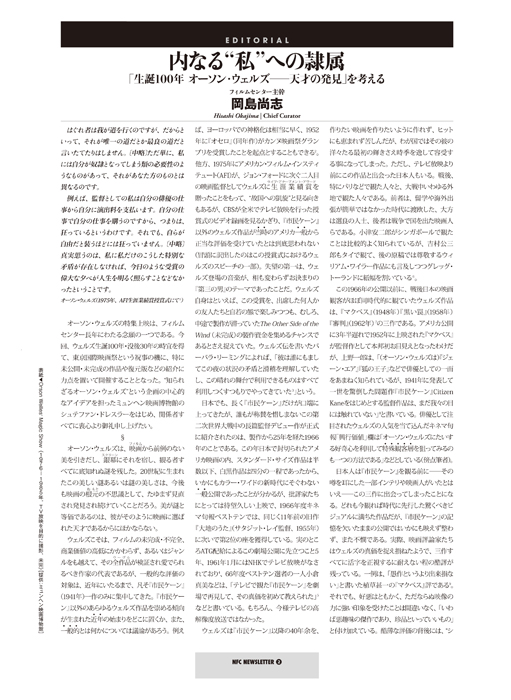 現在発売中の『NFCニューズレター』123号(2015年10月-11月号)に掲載されている岡島尚志(フィルムセンター主幹)執筆の『内なる“私”への隷属 「生誕100年 オーソン・ウェルズ――天才の発見」を考える』をPDFファイルで公開しました。是非ご覧ください。