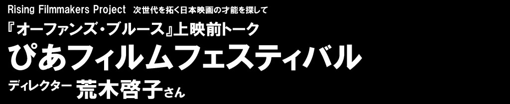 ぴあフィルムフェスティバルの荒木です。壇上で高い所からお話するような立場ではないんですけれども、失礼いたします。入場の際に、皆さんのお手元に今年、第40回のパンフレットを配布させていただきました。昨年から、多くの方に作品を知っていただきたいと思って、無料配布しております。本年のコンペティション「PFFアワード2018」では『オーファンズ・ブルース』他17作品、全部で18作品の入選作品からグランプリが選ばれました。このパンフを見て興味を持った他の作品がございましたら、オンライン上映もしておりますので、ぜひ観ていただきたいと思います。