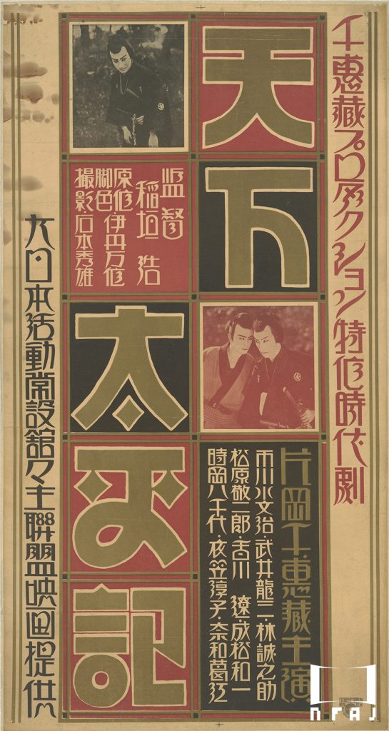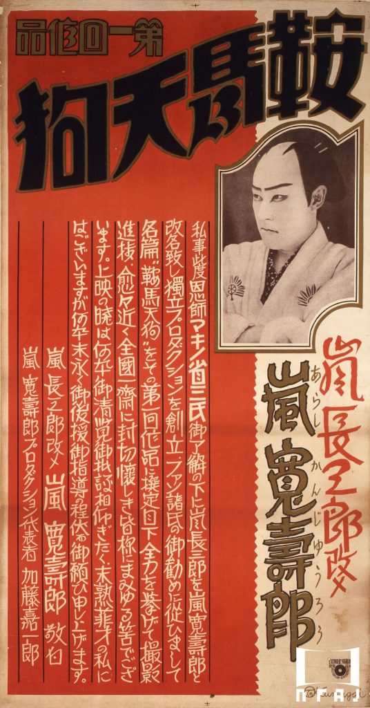 嵐寛寿郎プロダクションの創立第一作。マキノ・プロダクション在籍時の嵐長三郎から改名、独立した旨の口上が大きく添えられている。