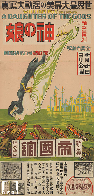 アメリカ、フォックス作品。ポスターの図柄は、サルタン王の宮殿に幽閉された神の娘が、王の愛妾の嫉妬によってワニのいる池に投げ込まれようとする場面。主演女優のアネット・ケラーマンはもと水泳選手で、『百万弗の人魚』(1952年)によってその半生が映画化された。