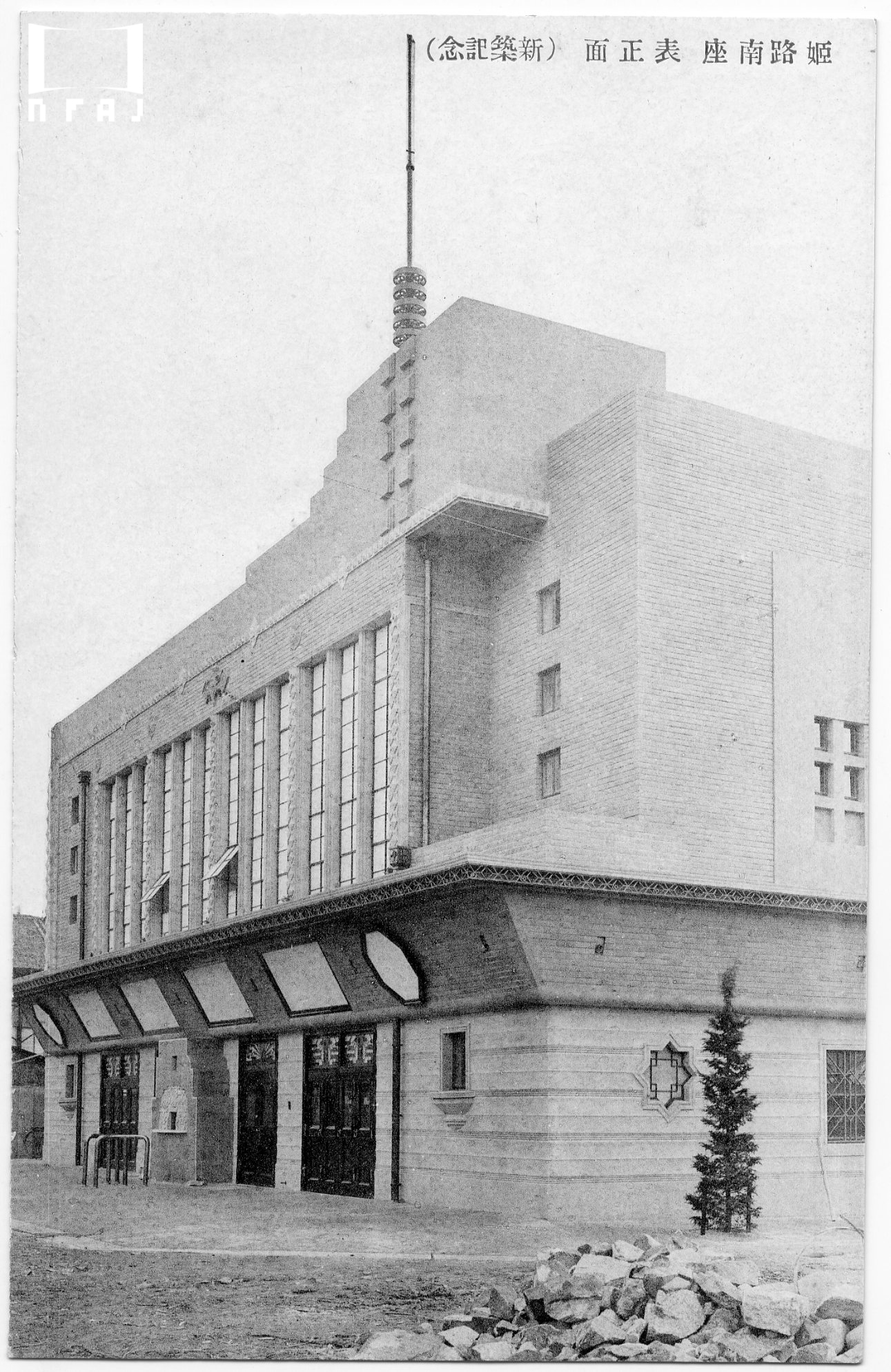 新築記念のポストカード。南座は戦後に「東宝南座」と改称。1964年に「姫路OS劇場」に改築され、現在も複合ビルの中に映画館がある。