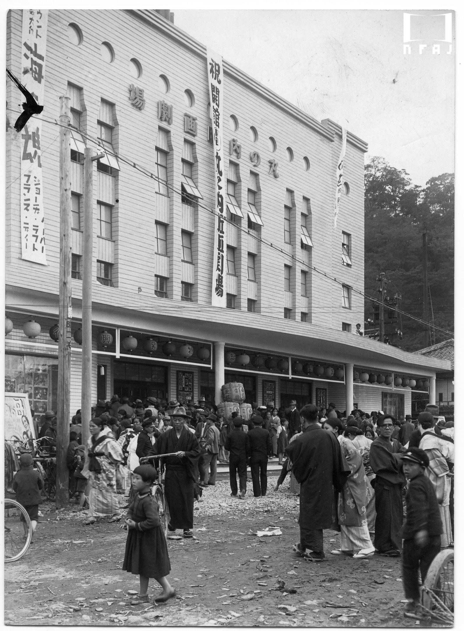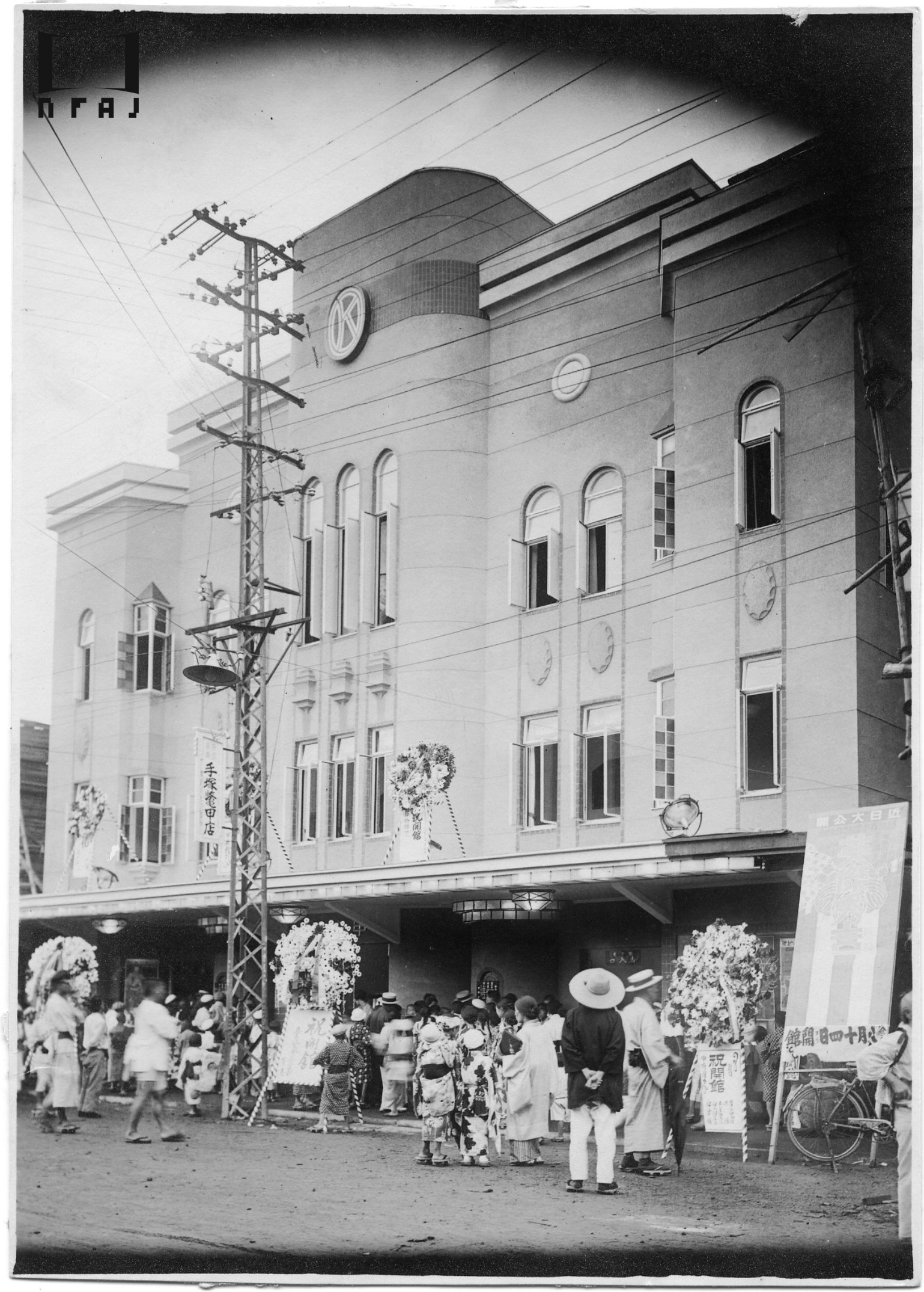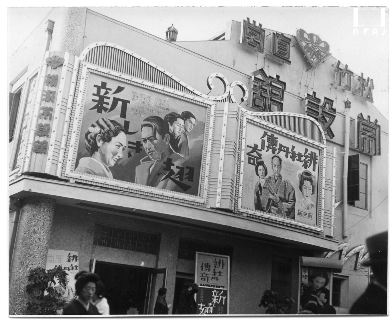 1934年12月の開館を控えた館前風景。定員は1508名。開館番組は松竹キネマの『その夜の女』(1934年、島津保次郎監督、田中絹代主演)とアメリカ映画『喇叭は響く』 (1934年、スティーヴン・ロバーツ監督、ジョージ・ラフト主演)
